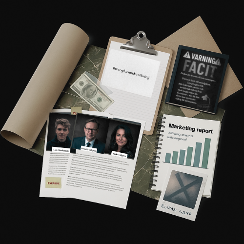 Du öppnar dörren till ett fall där sanningen ligger spridd över bordet: vittnesmål, utskrifter, fotografier och digitala spår. Allt ser äkta ut — som om någon lämnat scenen bara för en stund sedan. Ditt uppdrag är enkelt i ord, svårt i handling: läs vittnesmålen, analysera fotografierna, granska dokumenten för att nysta upp vad som verkligen hänt.